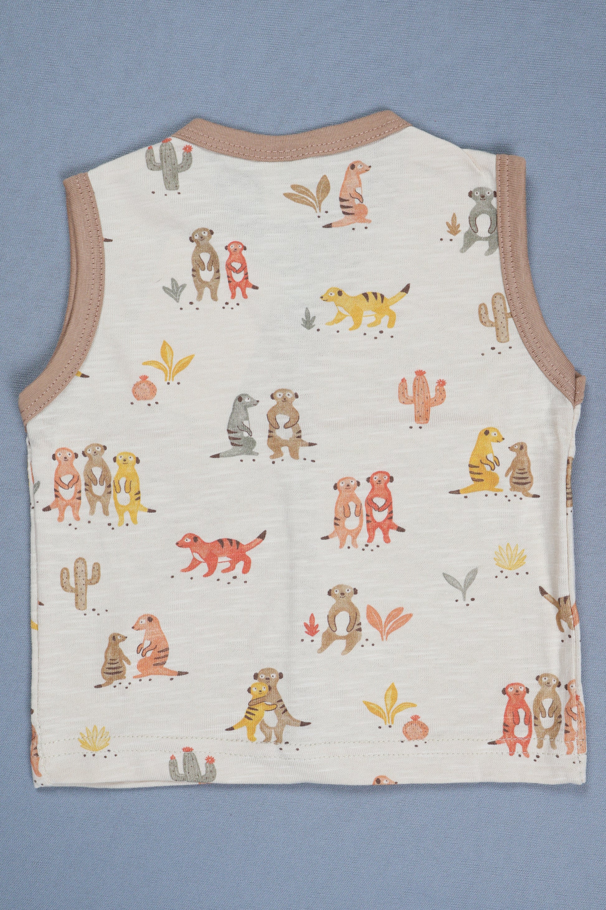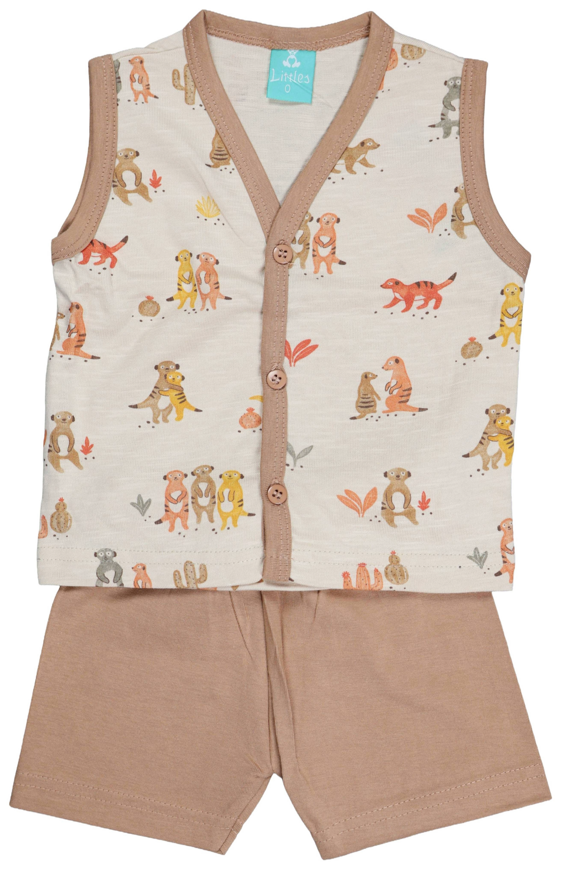 Made from ultra-soft, breathable cotton, this set ensures gentle comfort for your baby's sensitive skin throughout the day. The delightful all-over meerkat and animal print adds a touch of fun and adventure to any child’s wardrobe. With convenient button closures and a relaxed fit, dressing becomes effortless while keeping your little one cozy and stylish during playtime.