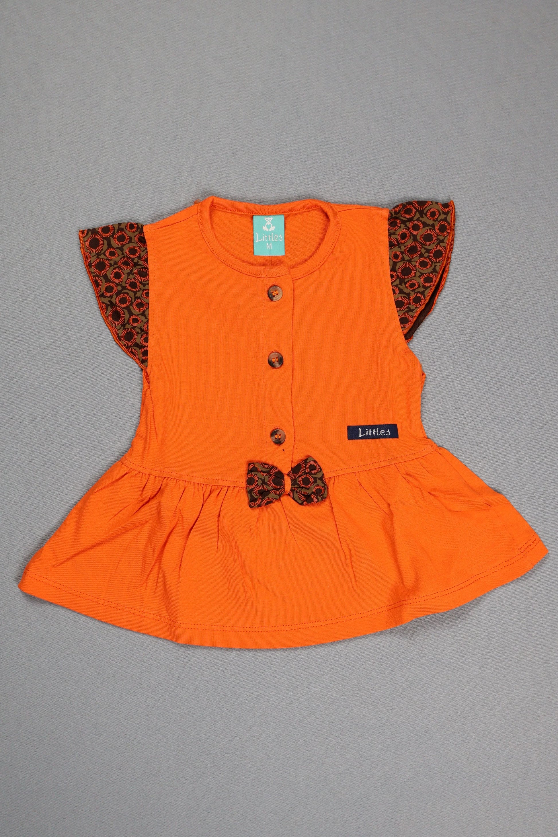 This Littles brand set, featuring a vibrant orange frock with sunflower-printed flutter sleeves and matching pants, is carefully folded and packed in a protective polybag to preserve the rich colors and crisp details during transit. The secure packaging helps prevent wrinkles and shields the flower prints, bow, and delicate button placket, ensuring the ensemble arrives in perfect condition for retail display or customer delivery. Fast, efficient shipping and thoughtful packing make for a delightful unboxing experience, especially for those who value both style and presentation.