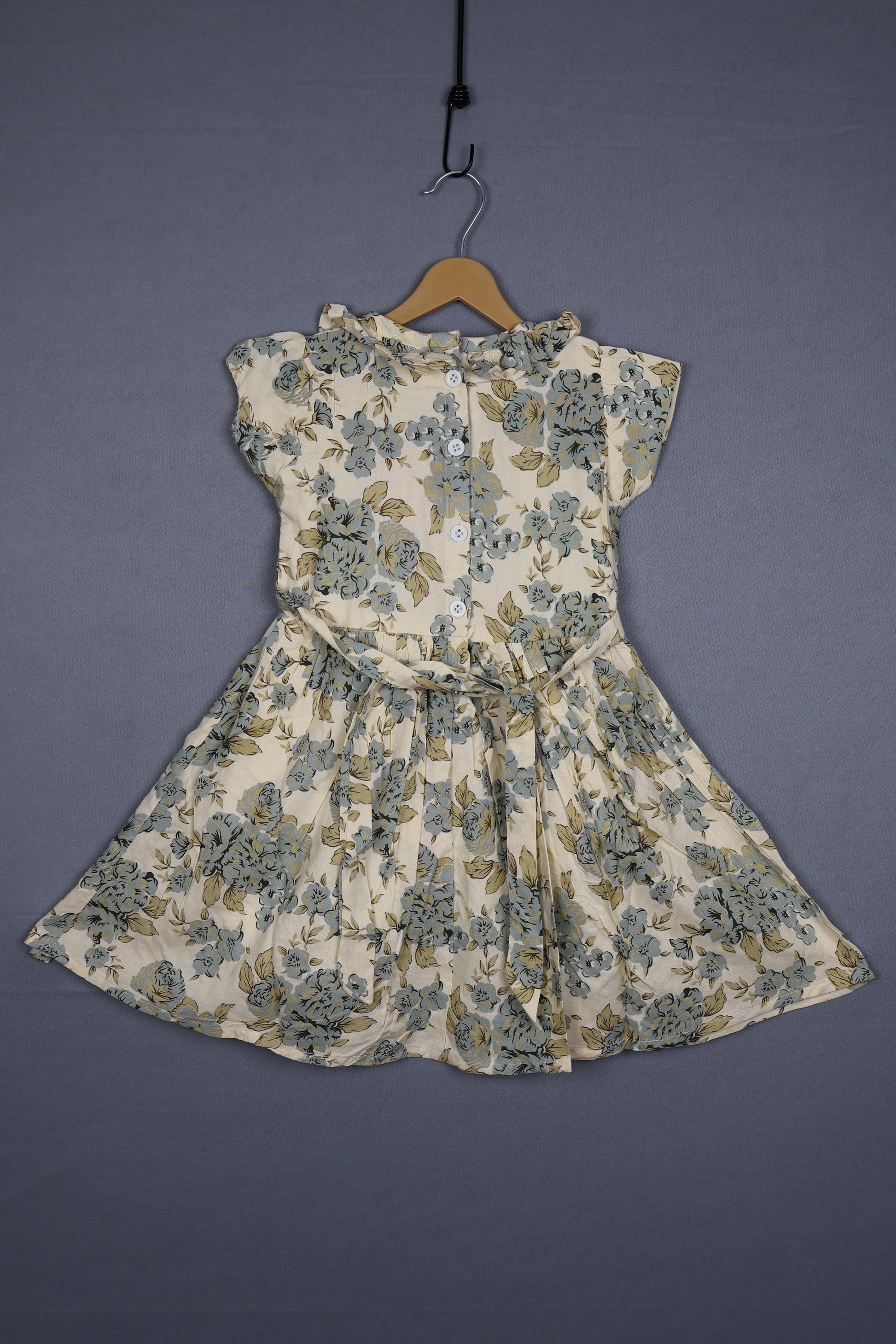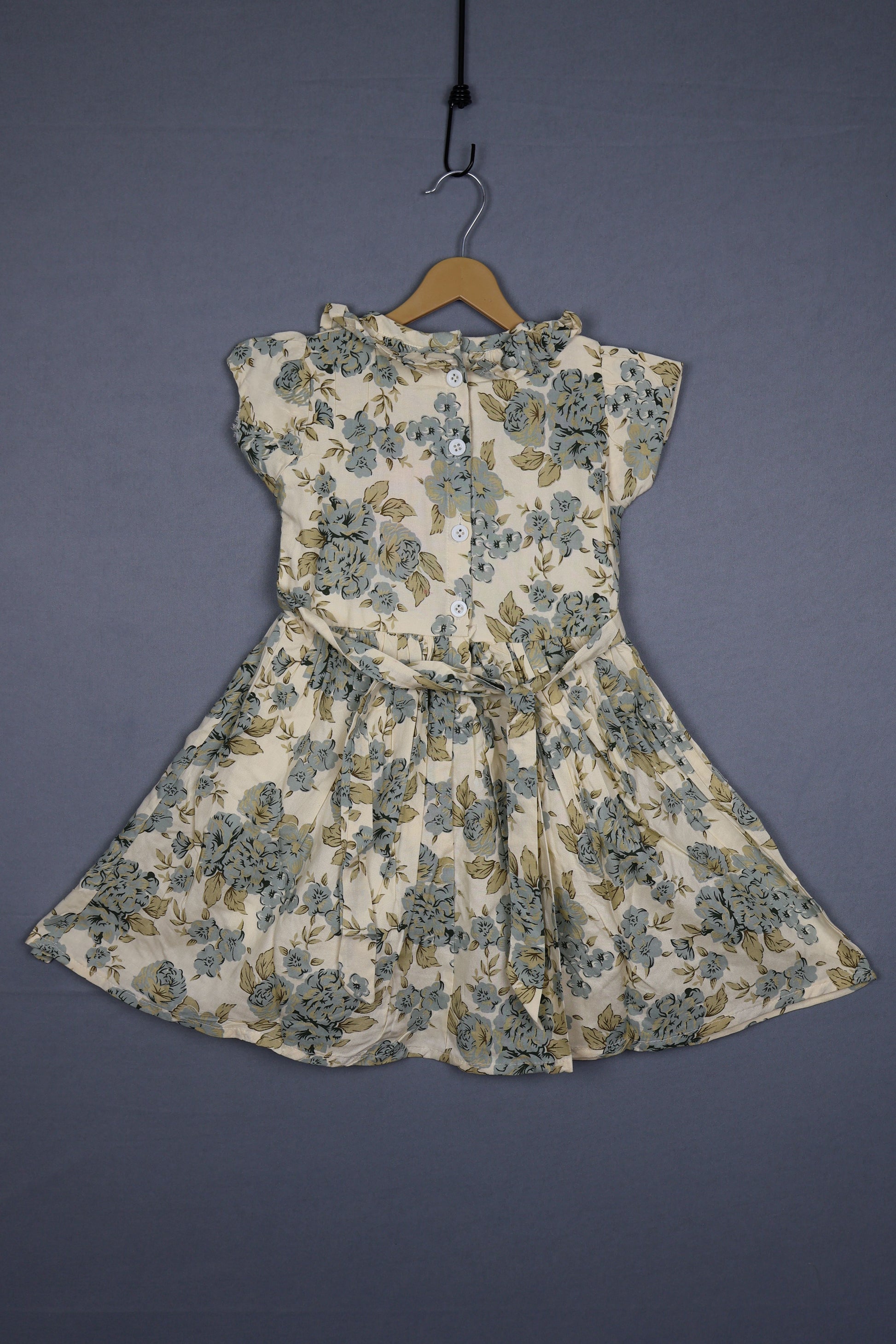 Made from soft and breathable fabric, this frock features a vintage floral print with stylish ruffles and buttons for a timeless look. The gentle flare provides comfort all day long and makes dressing up easy. Perfect for festive outings and everyday elegance, it adds classic charm to any baby girl's wardrobe.