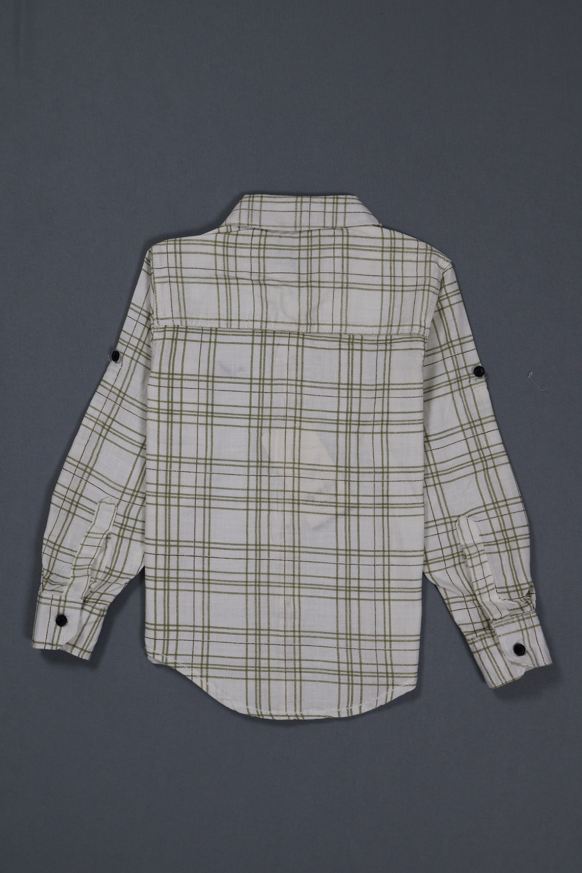 Featuring a refined plaid pattern in light gray and white with subtle accent lines, this shirt includes a classic point collar, button-front closure, and roll-tab sleeves for versatile styling options. Crafted from soft, breathable cotton with a modern tapered fit, it works beautifully for school events, family gatherings, or smart-casual occasions when paired with chinos or dark jeans. Perfect for boys who appreciate preppy, timeless patterns with contemporary comfort and style.