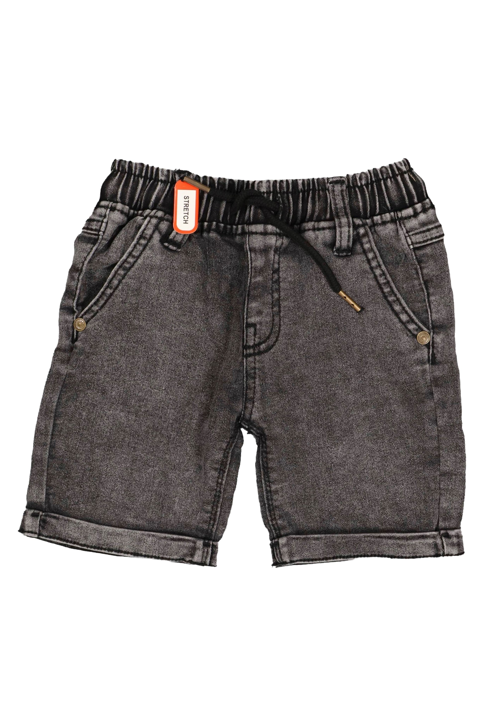Designed with a stylish stone-wash finish and an elasticated drawstring waist, these shorts combine trendy denim looks with easy stretch comfort for active kids. Functional side and back pockets add practicality, while the rolled hems give a modern, casual vibe. These versatile shorts are easy to match with any top, perfect for summer play and casual outings.