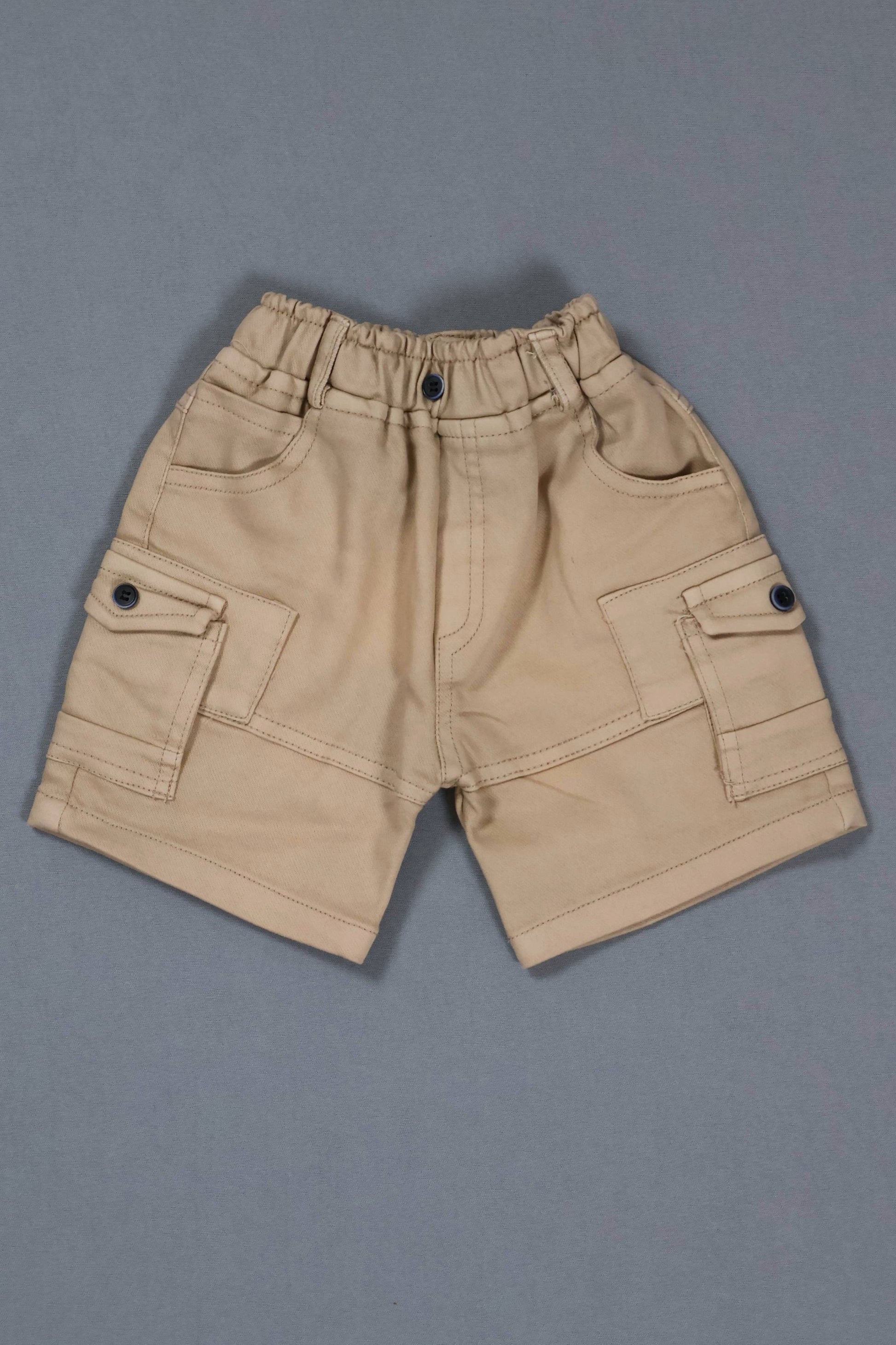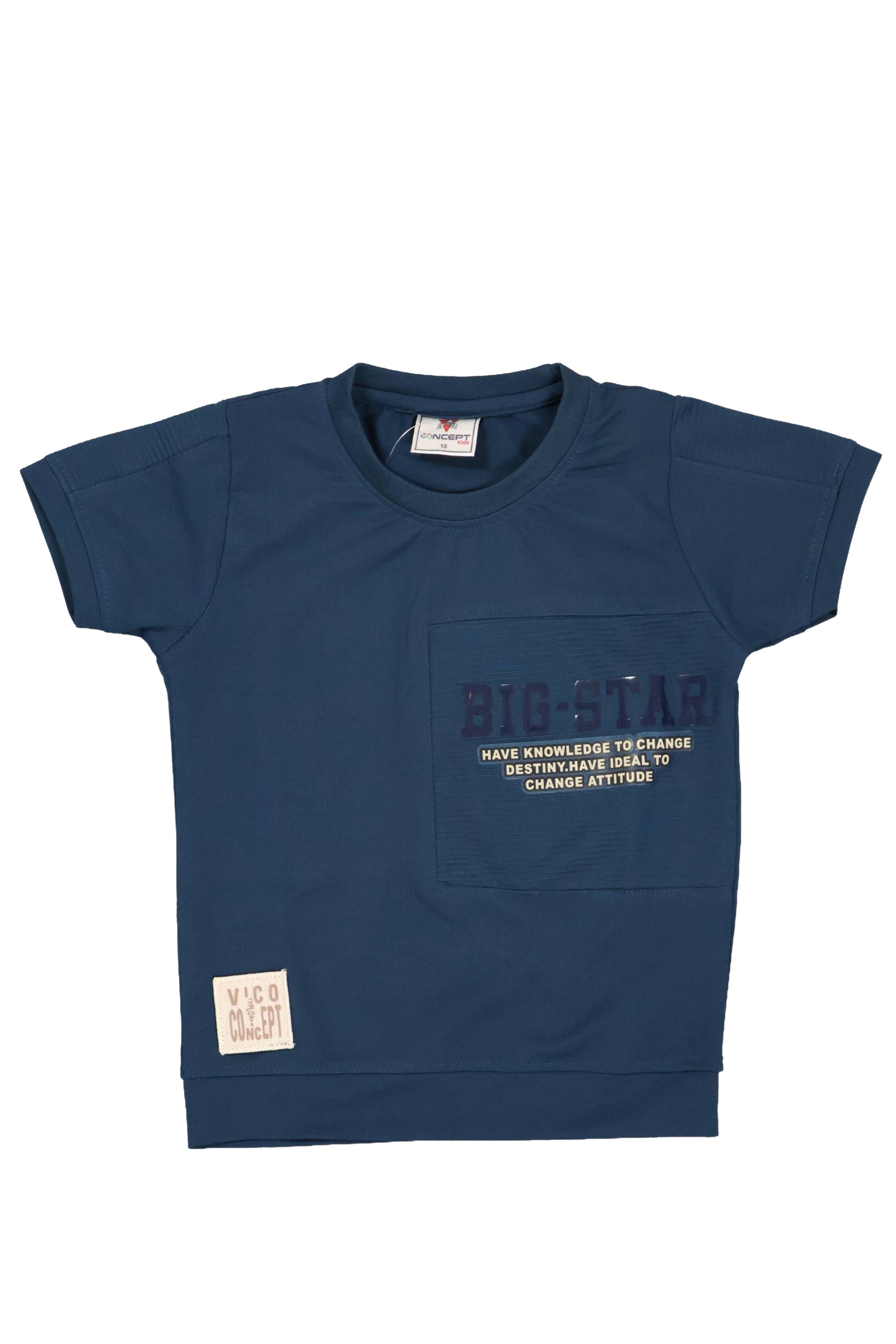 This set features a soft cotton crew-neck t-shirt with motivational "BIG STAR" print on a patch pocket, matched with practical beige cargo shorts that include flap button pockets for daily essentials. The outfit provides breathable comfort and freedom of movement, ideal for play, picnics, or outings. Versatile styling with fresh colors and functional pockets makes it a go-to choice for active kids.