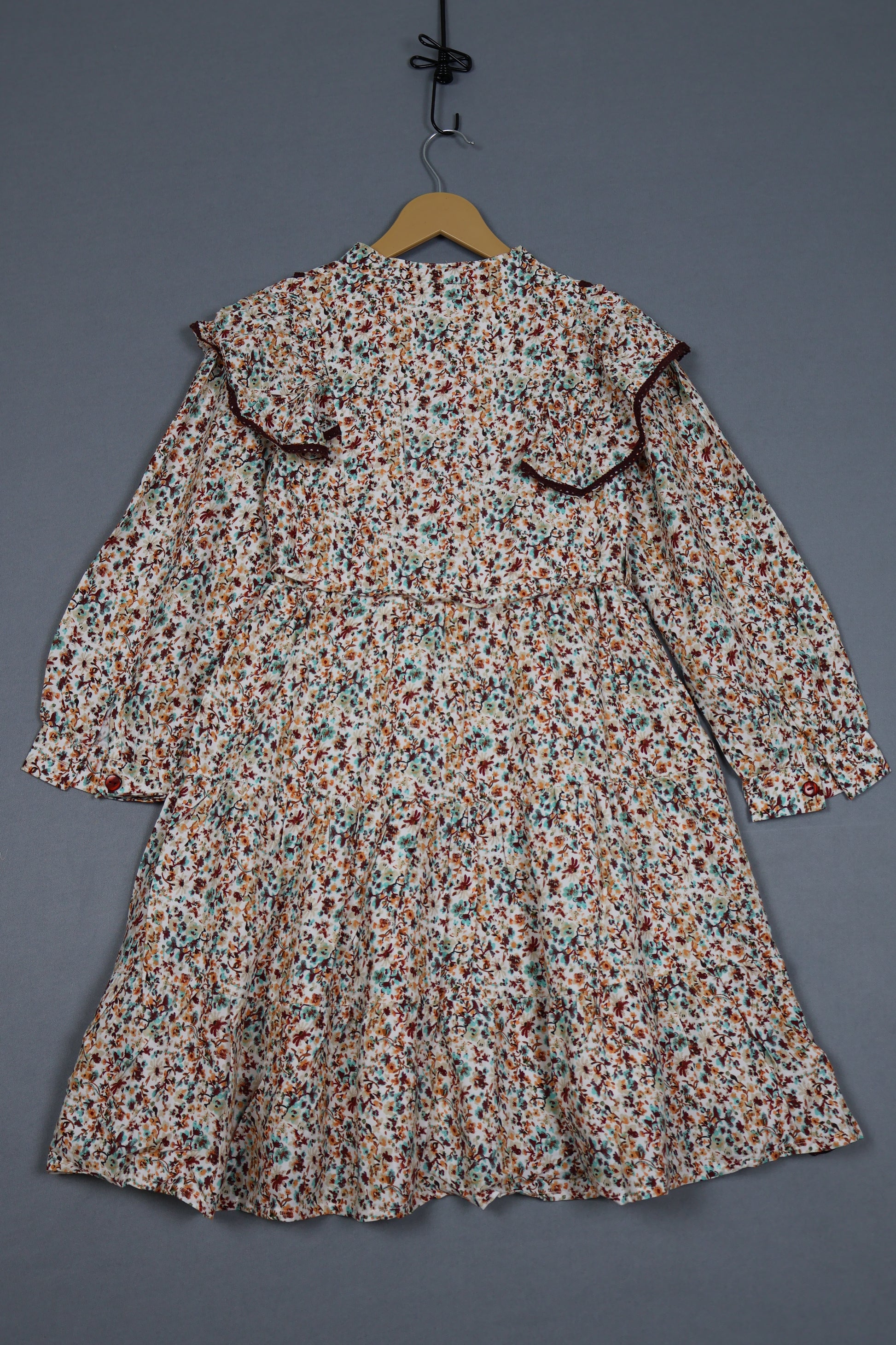 Made from breathable and gentle fabric, this frock features lovely maroon accents and a classic full-sleeve floral print. The flared skirt and ruffle details add a touch of elegance and make dressing easy for festive gatherings. Suitable for all-day comfort, the frock provides both style and practicality for every child’s wardrobe.