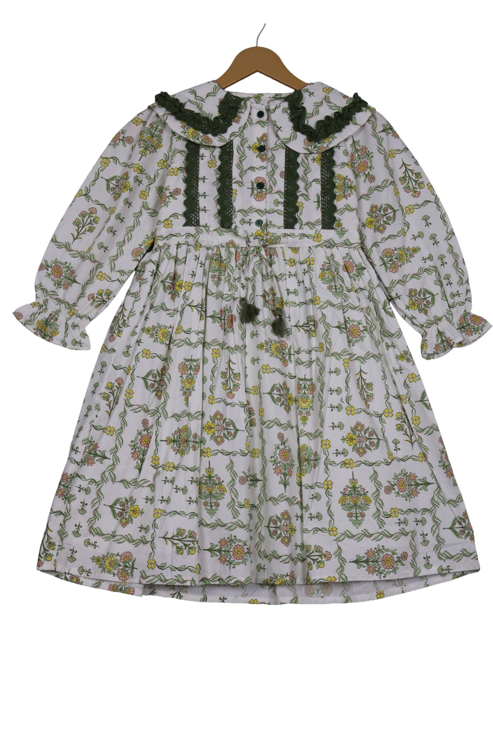 Crafted from soft breathable fabric, this dress offers all-day comfort with stylish embroidery and delicate ruffles. The gathered skirt and long sleeves feature charming ruffle details, combining classic style and practical ease for your little one. Ideal for parties, family gatherings, or formal events, this dress carries timeless appeal and comfortable wearability.