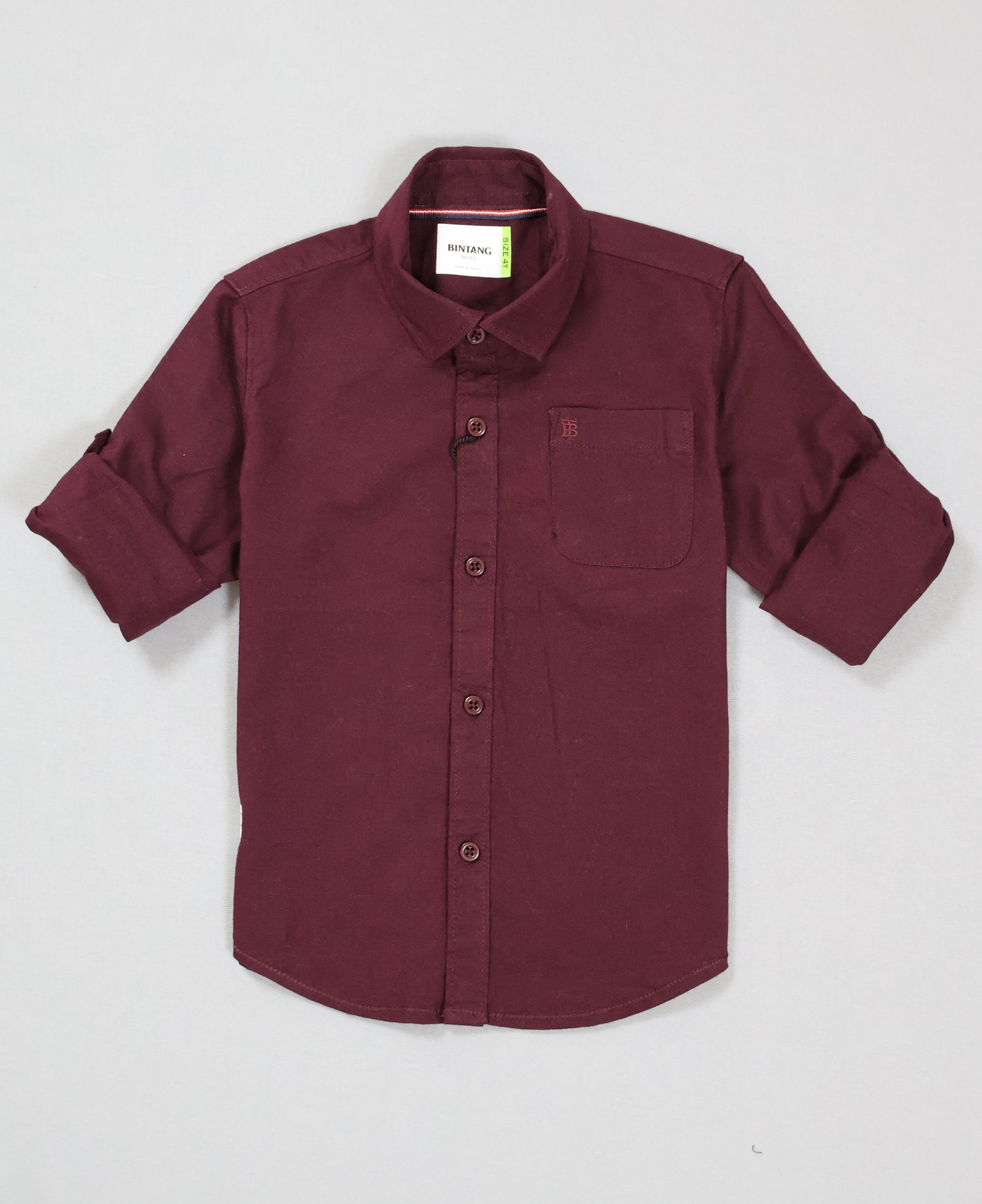 Made from comfortable, breathable cotton blend, this shirt features a solid maroon tone with a classic collar and long sleeves with button tabs for rolling up. The simple, elegant design offers versatile style for any season or occasion. Easy to care for and durable, it ensures kids stay comfortable and stylish throughout the day.
